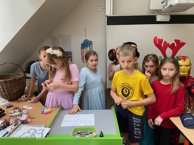 Parlamentarzyści z pierwszego stopnia zorganizowali dla swoich kolegów wyjątkowy Bajkowy DzieńUczniowie klas 1–5 zostali podzieleni na grupy i wyruszyli w pełną przygód wędrówkę po przygotowanych stanowiskach. Czekały tam na nich bajkowe postacie oraz różnorodne zadania, w tym wspólne rozwiązywanie specjalnej krzyżówki.