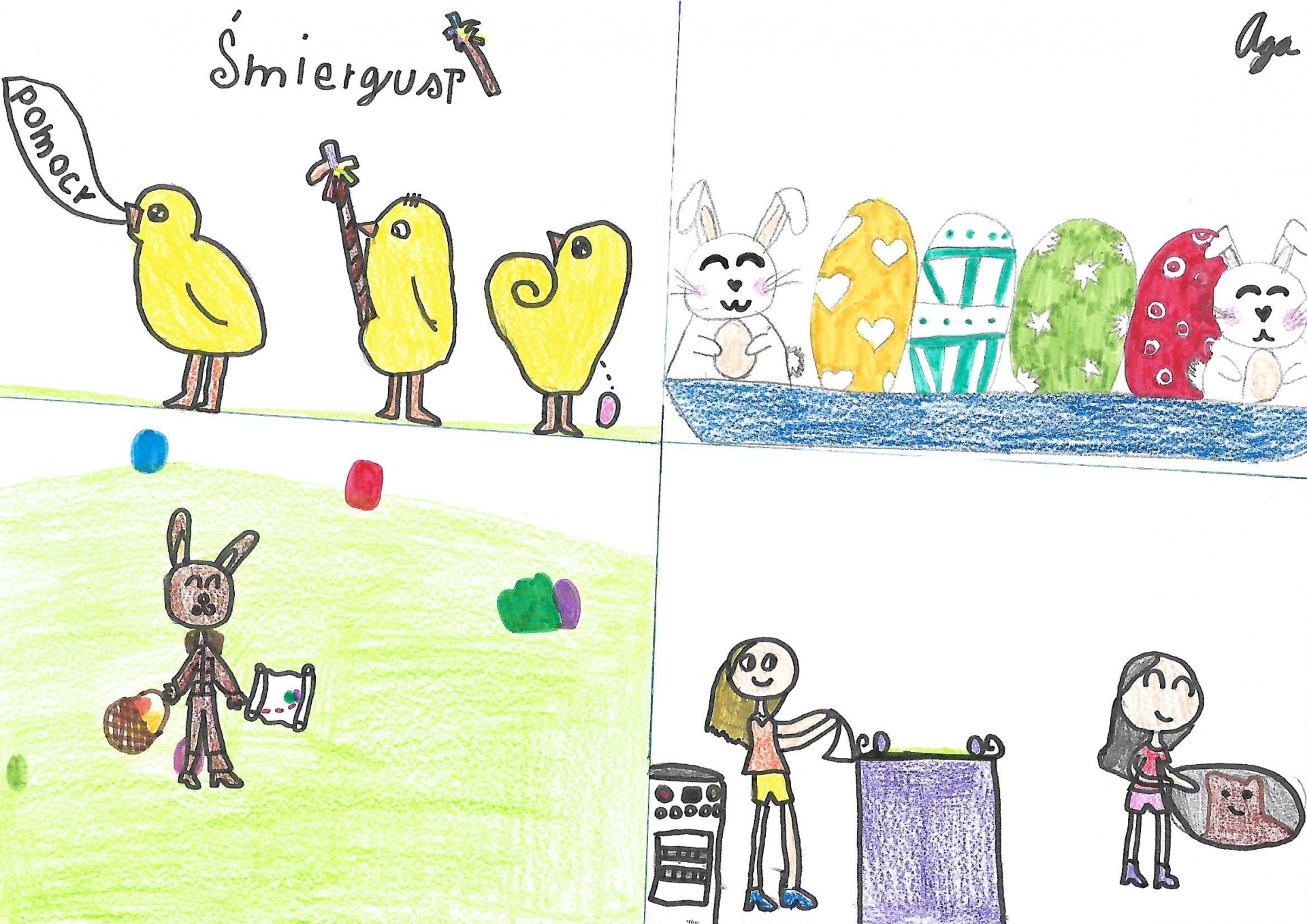 Do tradycji świątecznych należy oprócz pieczenia baranka, lania się wodą w Śmigusa-Dyngusa, tworzenie dekoracji wielkanocnych. W online nauczaniu klasy pokazały, że przygotowania do świąt są już mocno zaawansowane. Począwszy od pisanek, oryginalnych życzeń, po przeróżne stroiki.