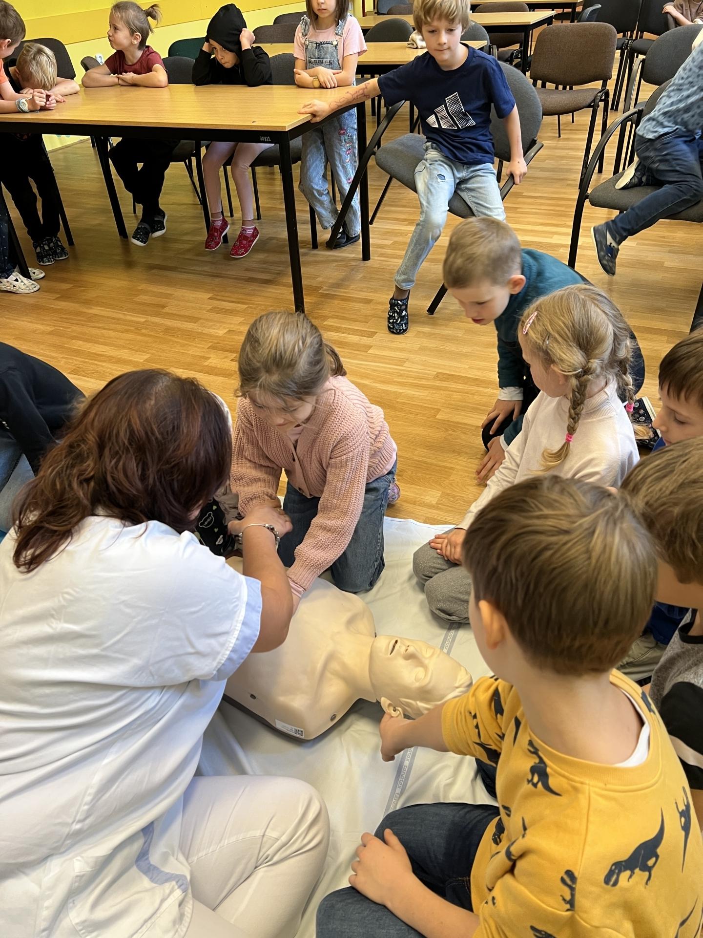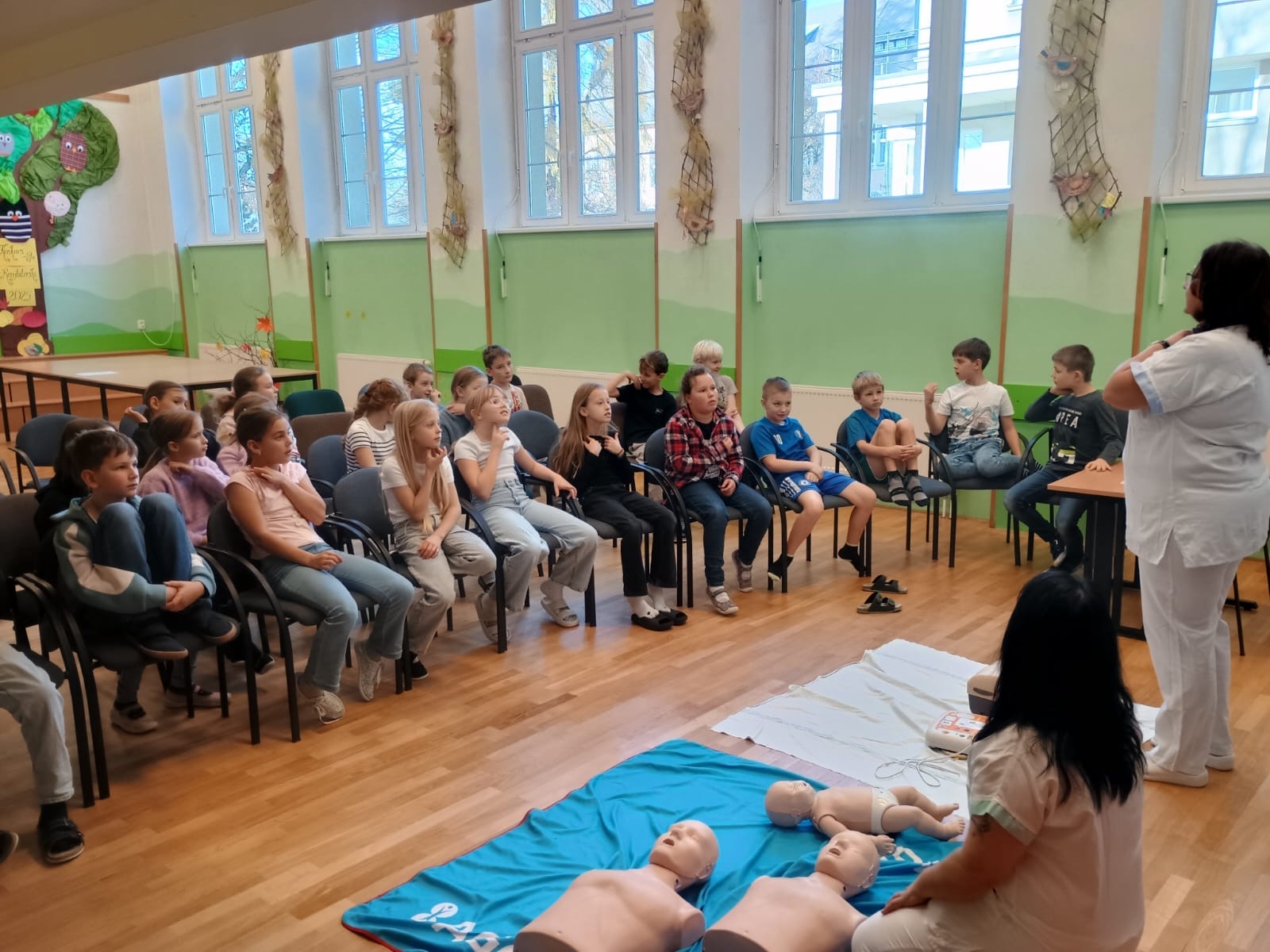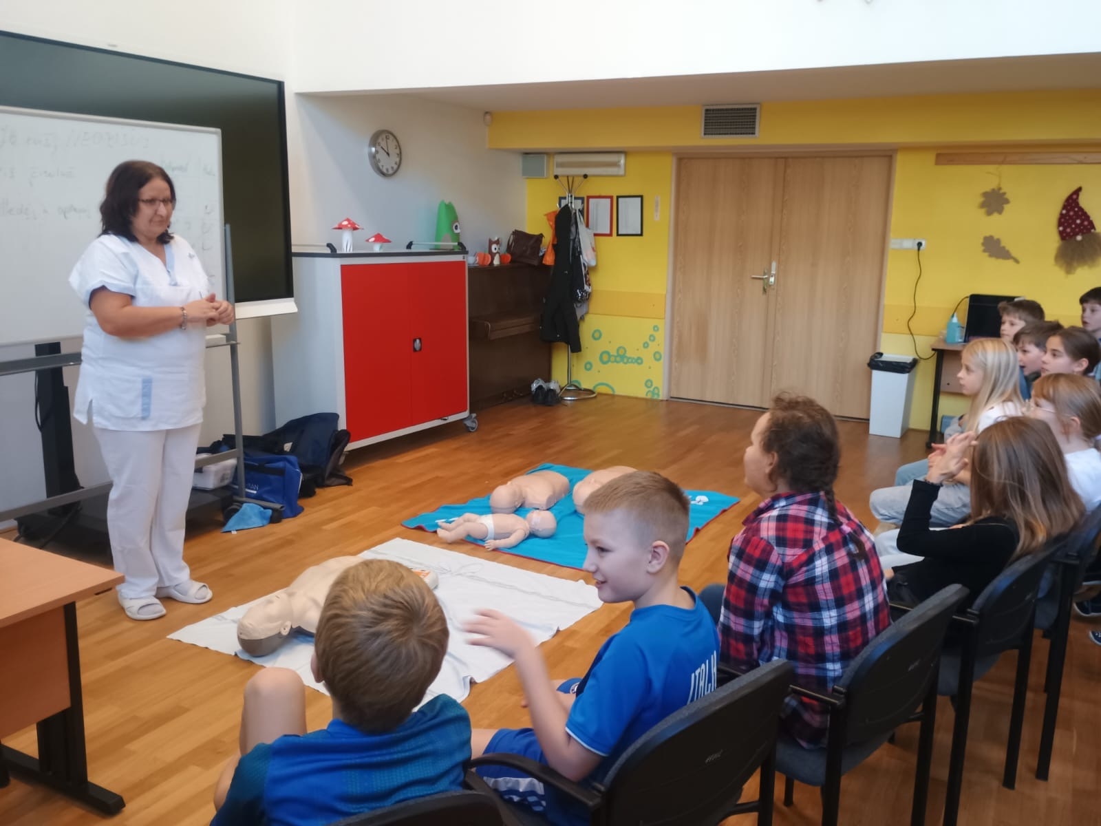 W auli szkolnej odbyło się spotkanie uczniów z pielęgniarkami ze szpitala Agel Trzyniec–Podlesie. Podczas spotkania uczniowie mieli okazję zapoznać się z podstawowymi zasadami udzielania pierwszej pomocy, dowiedzieć się, jak reagować w sytuacjach zagrożenia życia i praktycznie przećwiczyć niektóre techniki ratunkowe.