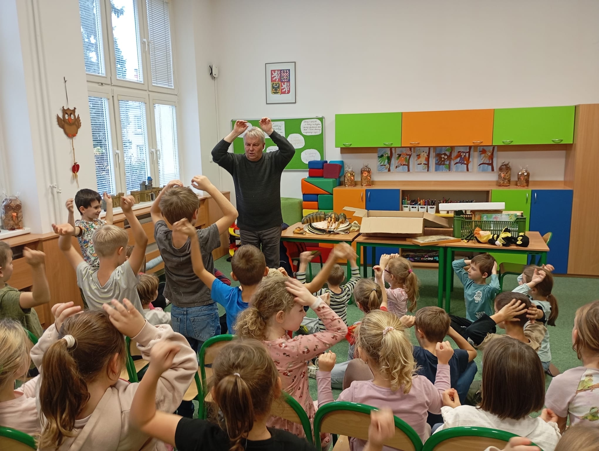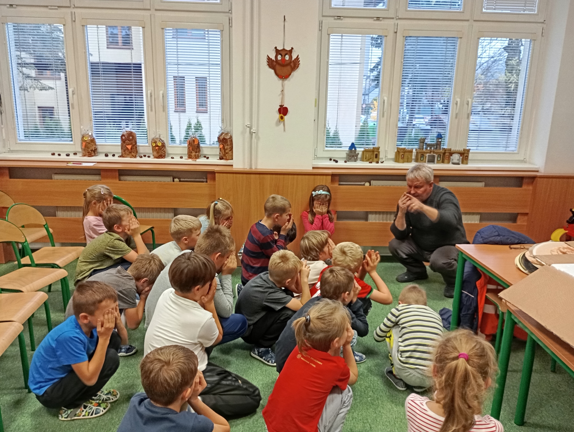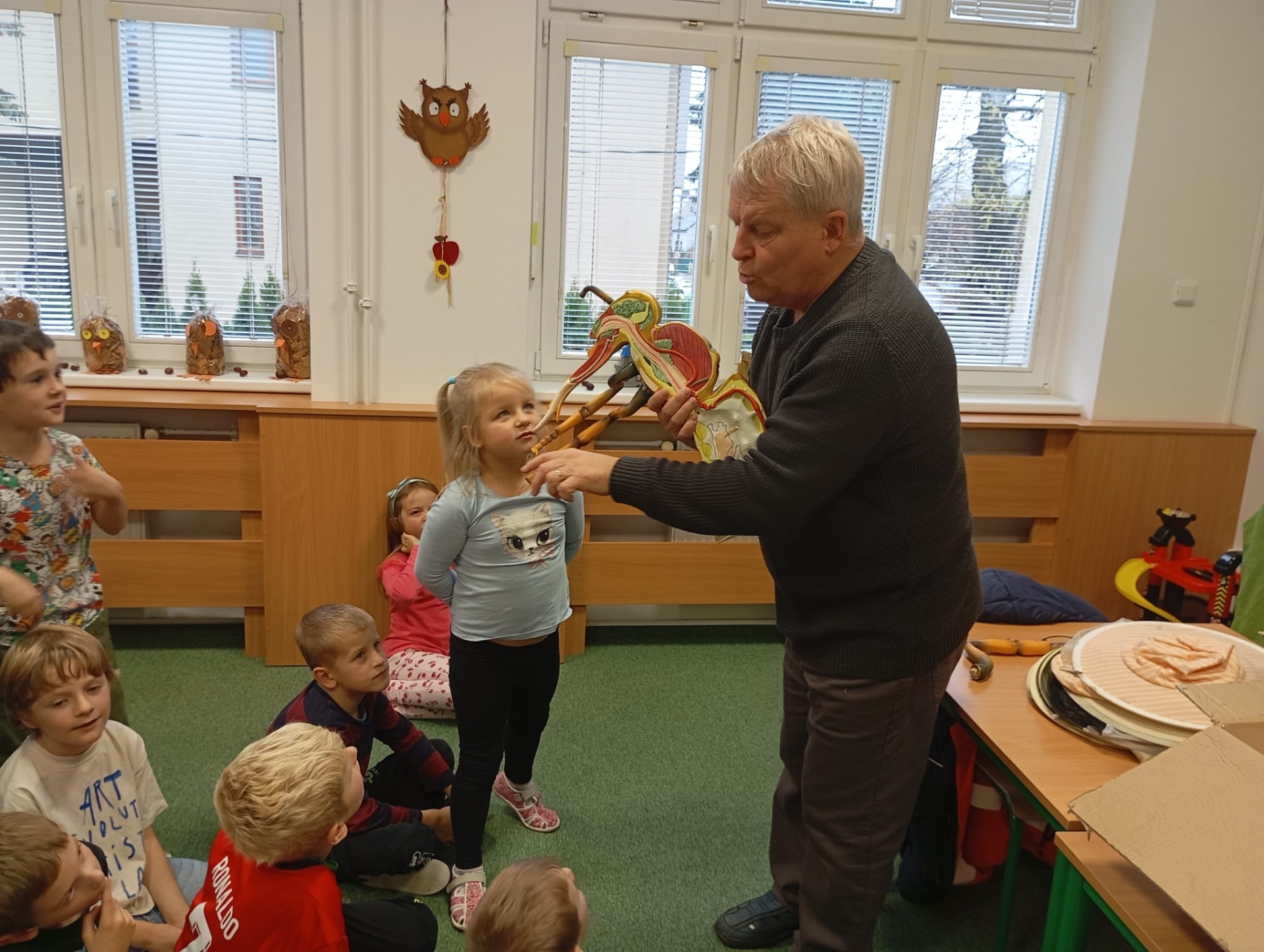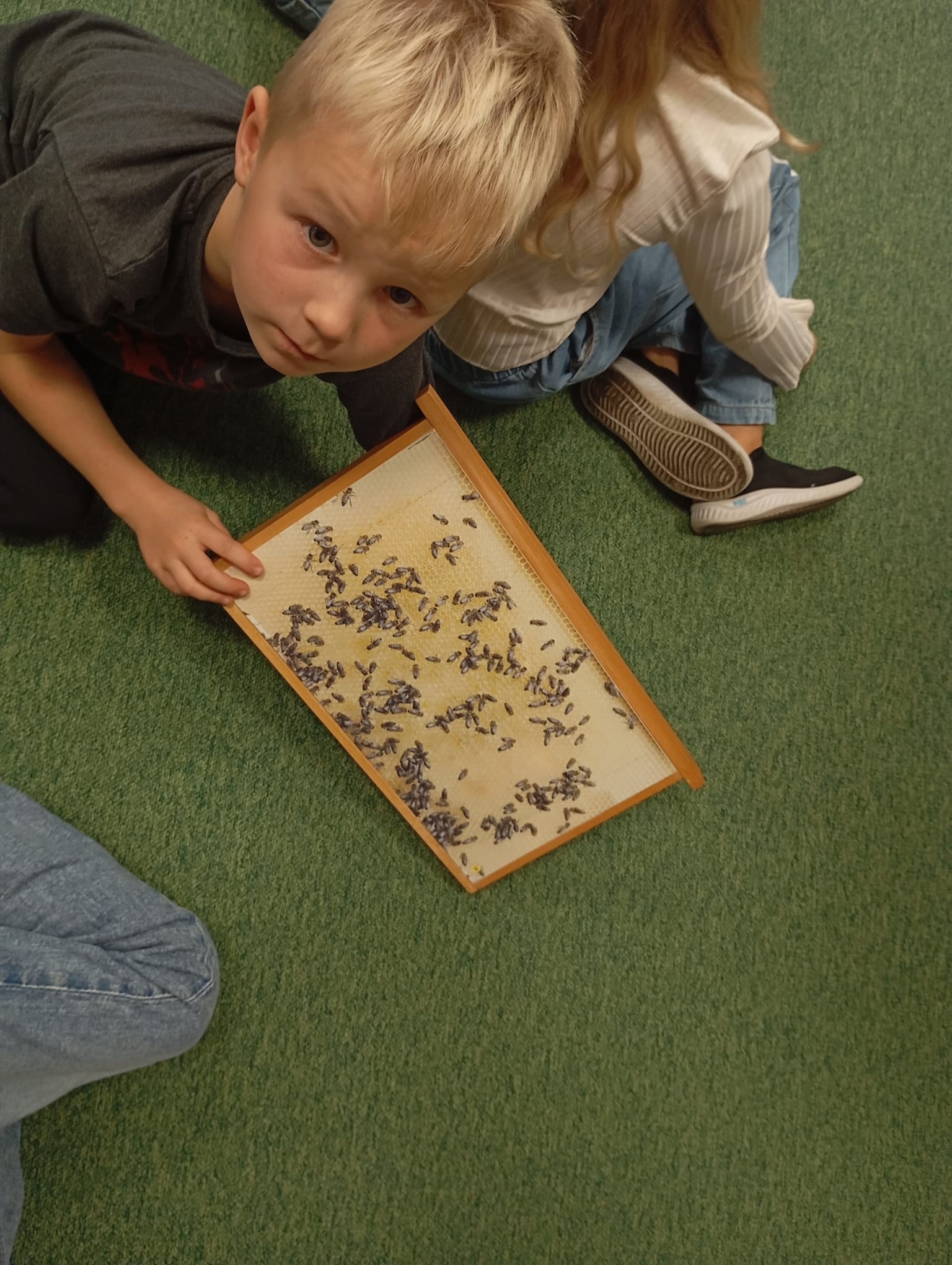 W świetlicy szkolnej odbyło się ciekawe spotkanie z pszczelarzem, który opowiedział dzieciom o życiu pszczół i ich ogromnym znaczeniu dla przyrody. Uczniowie dowiedzieli się, jak powstaje miód oraz dlaczego pszczoły są tak ważne dla człowieka i środowiska. Nie zabrakło również przymierzania prawdziwego stroju pszczelarskiego.