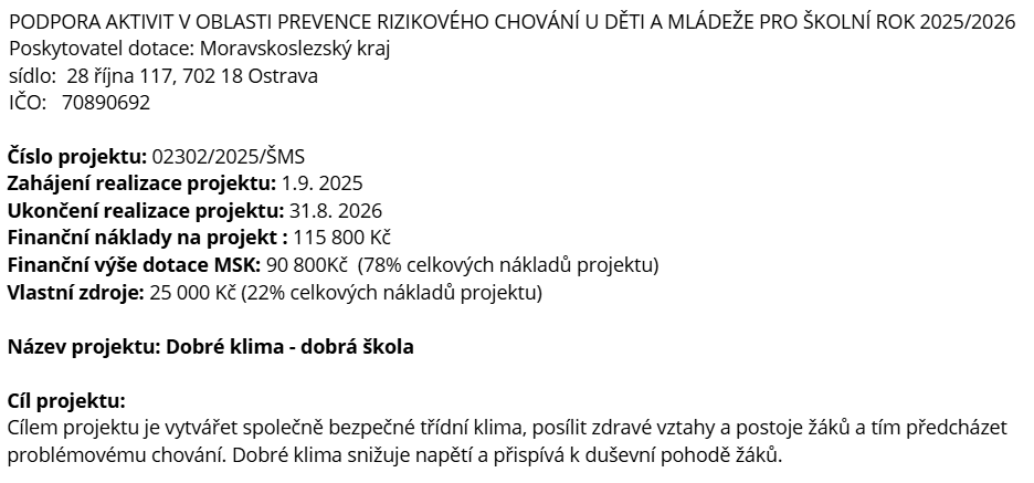 Dobré klima - dobrá škola